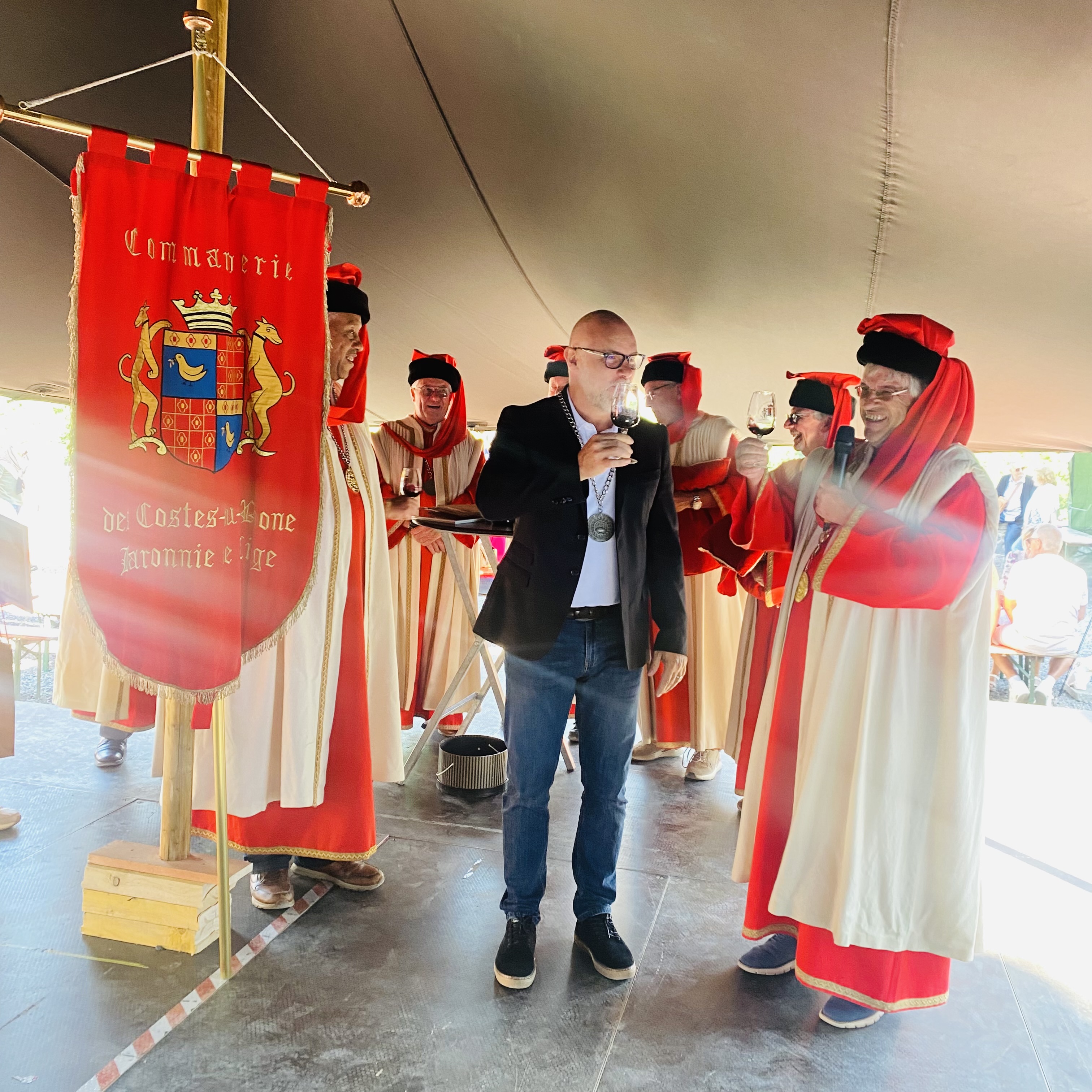 La Confrérie compte une quinzaine de membres actifs et plus de 500 intronisés, dont des célébrités comme David Douillet, Annie Cordy ou encore Enrico Macias…